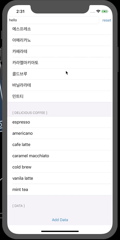 이렇게 구성해주고 프로젝트를 빌드하면 다음과 같은 결과를 얻을 수 있습니다! 저는 약간의 추가기능으로 추가한 데이터를 없애는 Reset 버튼까지 한번 만들어봤어요. 그냥 data 배열을 초기화해주고 reload만 해주면 되니까 쉽게 만들 수 있을거예요! ㅋㅋㅋ