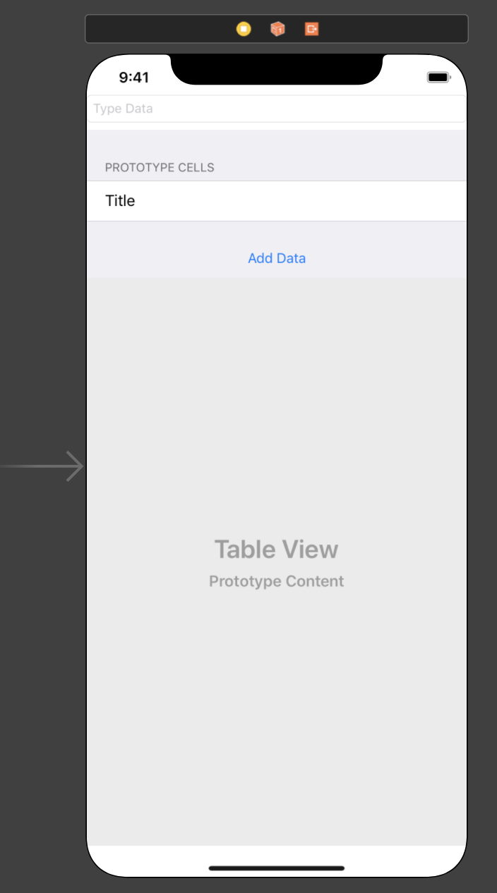 일단 새로운 셀을 추가시키는 버튼을 스토리보드를 통해 배치해줍시다. 버튼을 끌고 테이블 뷰 위에 올려두면 셀처럼 테이블뷰의 요소로 포함되게 됩니다. 또, TextField를 하나 배치해서, 여기에 입력된 데이터를 새로 생성되는 셀의 타이틀로 넣어주도록 합시다!