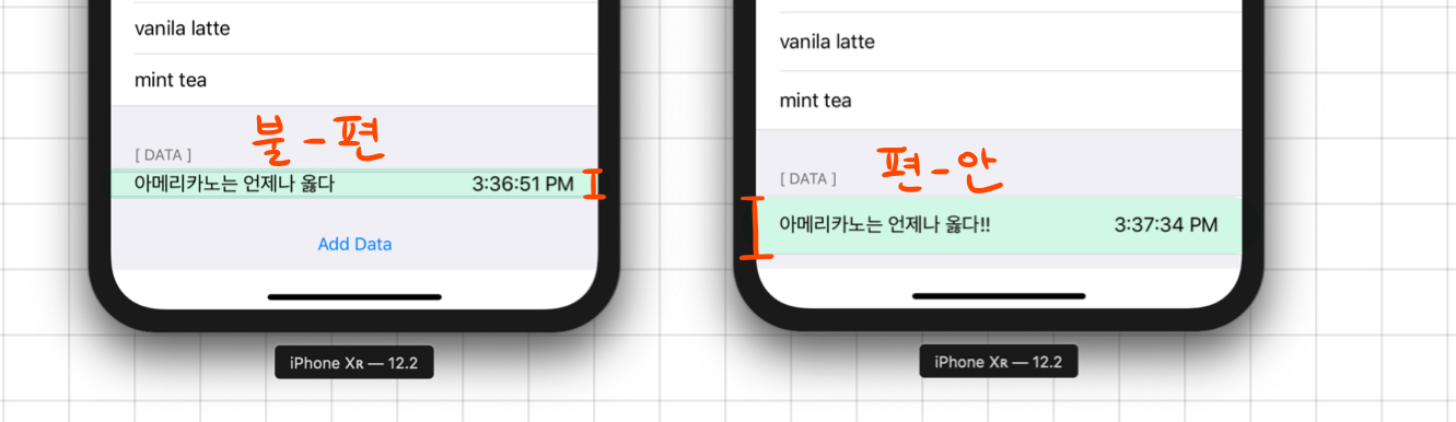 위의 이미지에서 좌측 레이블에는 입력받은 text를 삽입하고, 우측 레이블에는 셀을 추가한 시간을 담고 있는데, 위의 timeFormatter는 이렇게 작성해주었어요. 이정도는 이제 간단하게 쓸 수 있죠. 후후후