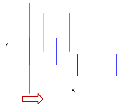 X가 첫 변에 도착했을 때는 아무 사각형이 없었던 상태이므로, y가 0이여서 지도에 아무것도 추가되지 않는다. 그 다음, 변이 사각형의 시작에 해당하므로, y에 해당 변의 크기 만큼 y값들이 ys[y]++ 된다.