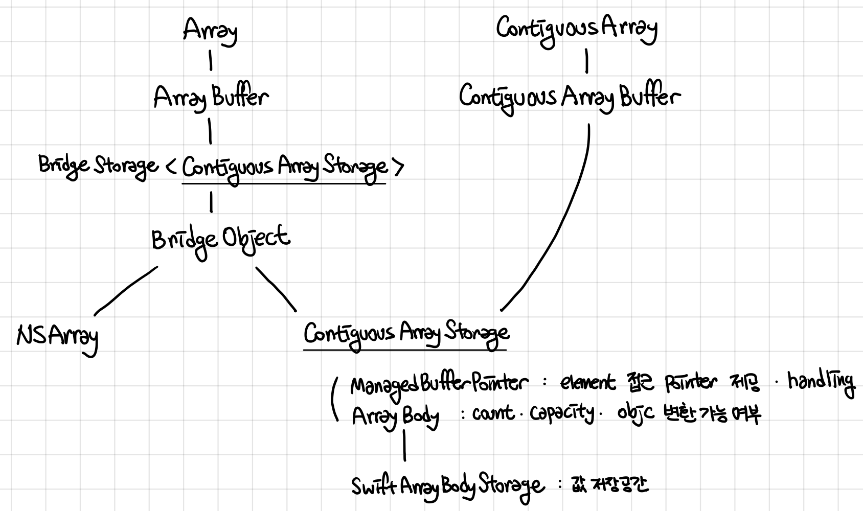 - 코코아 프레임워크 → swift → 코코아 프레임워크 의 빠른 변환을 위해 NSArray, Array 간의 casting이 메모리 추가 할당 없이 가능해야함