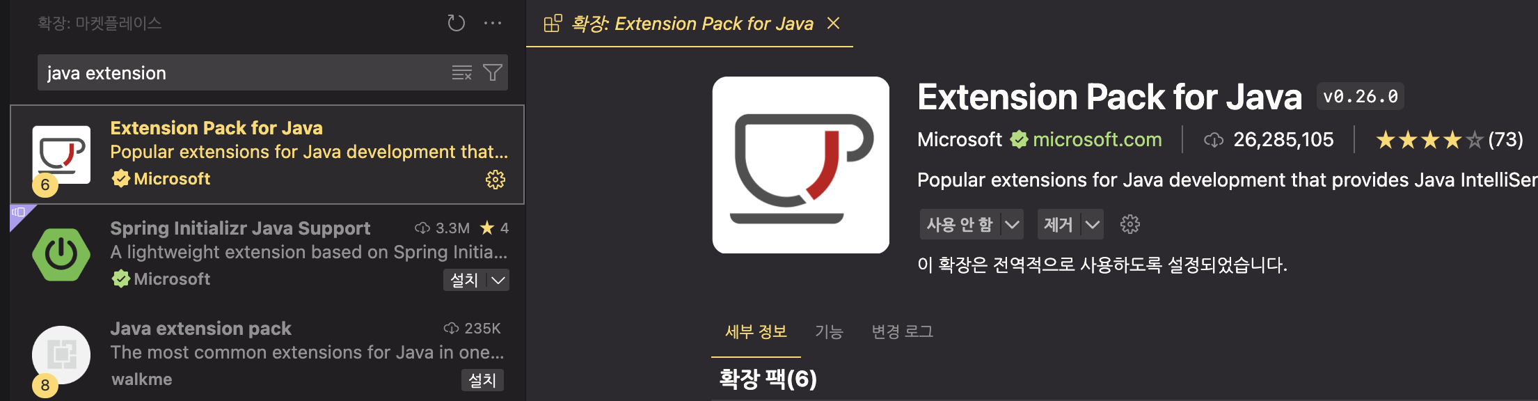 Extension Pack for Java 확장프로그램을 VSCode 에서 찾아 설치해주면 된다.