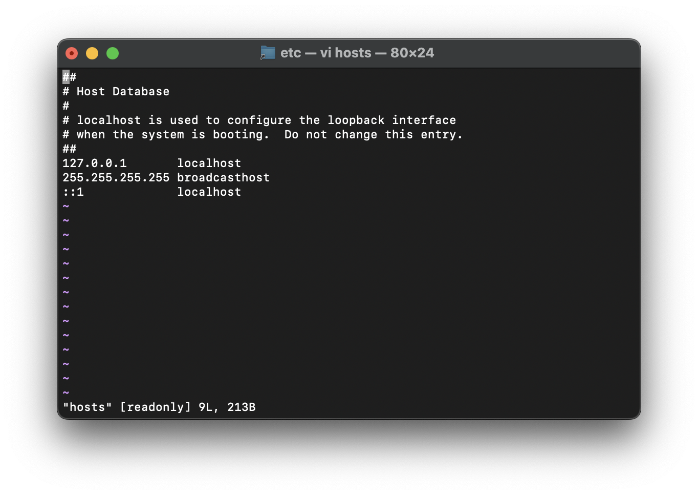 mac에 있는 hosts 파일은 대략 이렇게 생겼다. /etc/hosts 경로에서 찾을 수 있는데, 생각보다 웹사이트 주소가 기록된 게 없네..? 당황스러웠다.