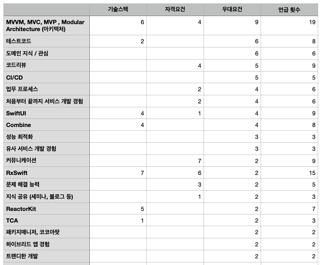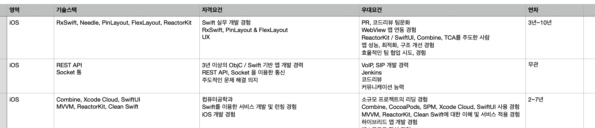 iOS 취업 공고의 자격요건과 우대요건들을 간략하게 정리해봤다! 다른 취준생들의 시간을 아껴주는 포스트가 되기를 바란다 :)