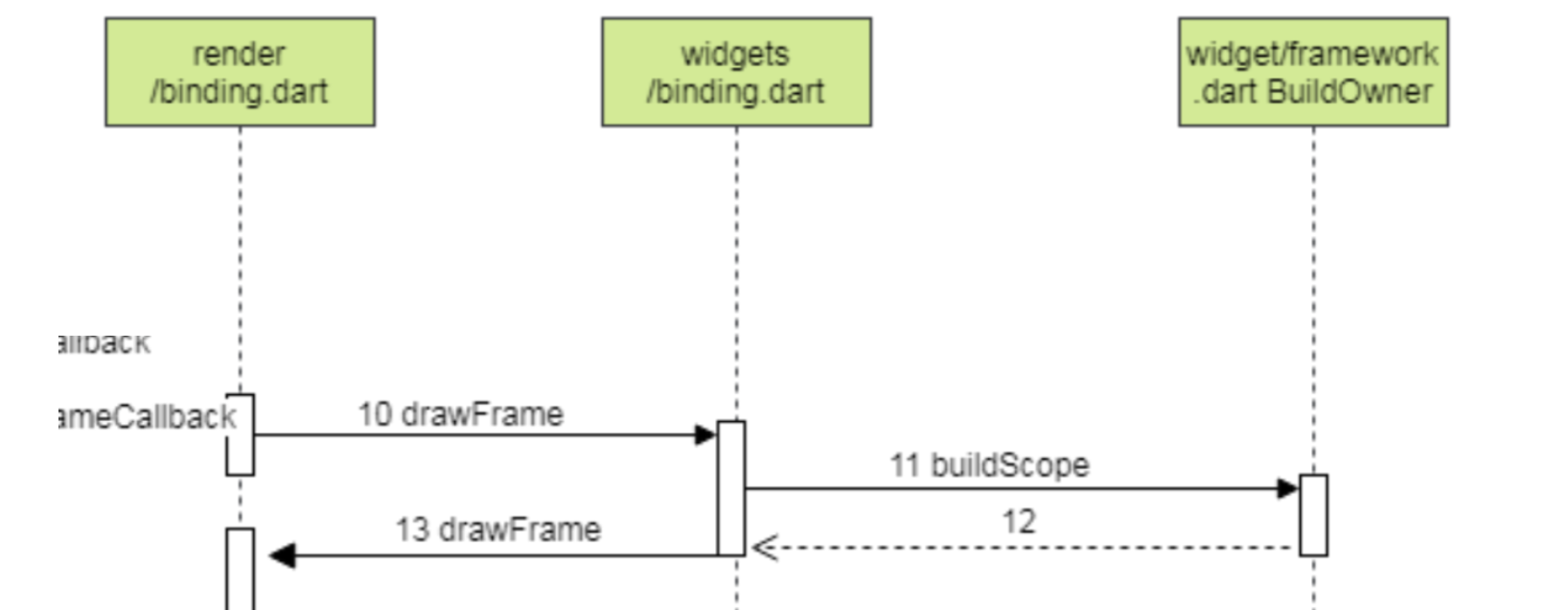 - Flutter 엔진이 실행될 때 vsync 신호에 콜백 등록