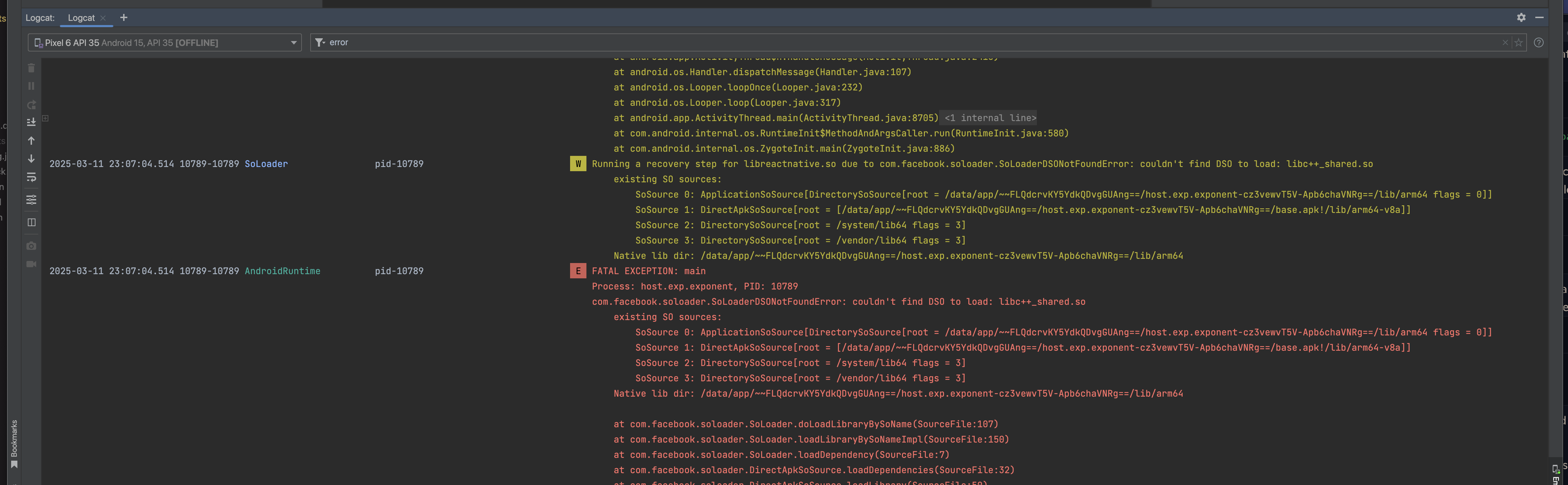 com.facebook.soloader.SoLoaderDSONotFoundError: couldn't find DSO to load: libc++_shared.so