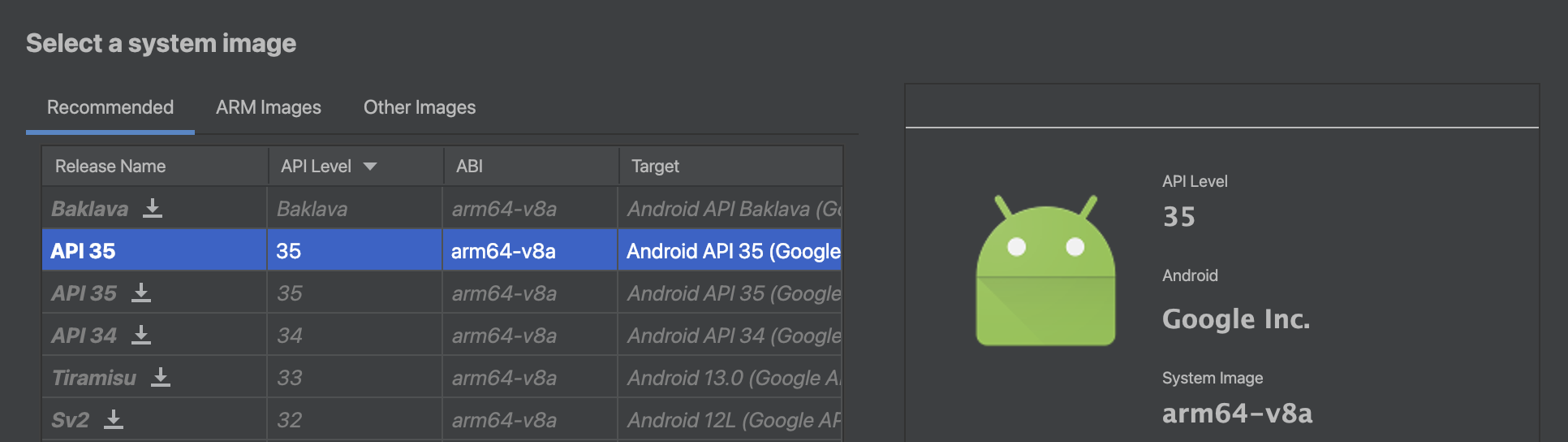 두 에뮬레이터 모두 동일한 시스템 이미지를 적용해서 API 35 / arm64-v8a 아키텍처를 사용해줬는데 다르게 결과가 나왔다는게 약간 의아하다... 후...