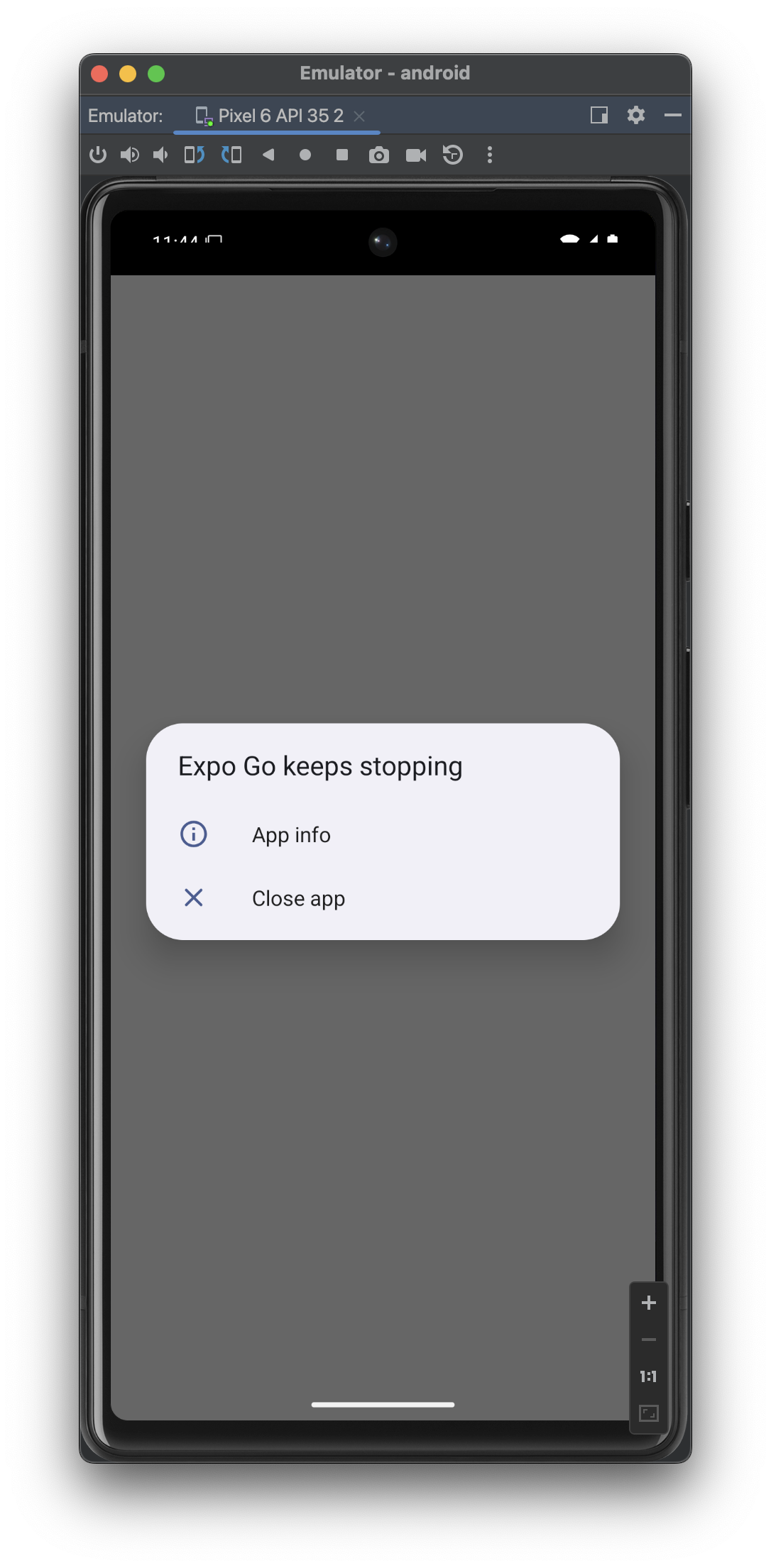 근데 이게 Expo 에서 앱 빌드를 안누르고 그냥 에뮬레이터 상에서 Expo 앱을 누르기만 해도 Expo Go 앱 자체가 꺼져버리는거라, 코드나 빌드 상의 문제가 있는 것 같지는 않았고 Expo Go 자체의 문제로 크게 의심되었다.