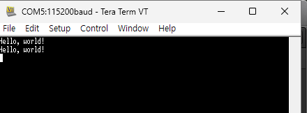 우선 첫 번째로, USB로 연결된 PC에게 UART로 문자열을 한 번 보내보자.