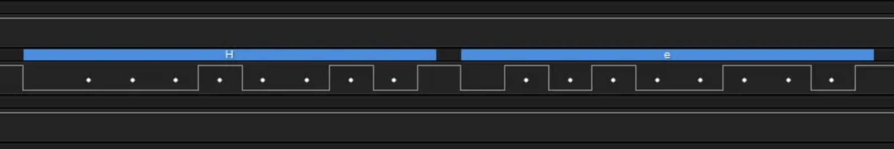 여기에서 첫 번재 글자 H 와 두 번째 글자 e 를 살펴보면 UART 통신의 Frame 에 대해서도 확인할 수 있다!