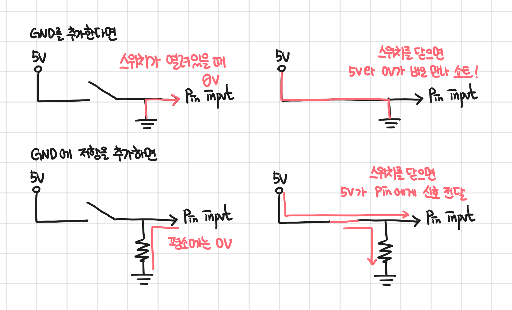 - 신호가 없을 때 (스위치가 끊겨있을 때) LOW를 전달