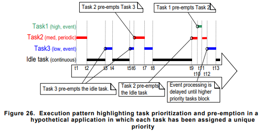 현재 우선순위가 높은 Task가 실행중이라고 해도, 이 친구들도 통신 프로토콜을 따르기 위해 잠시 몇 ms 동안 가만히 대기를 해야하거나 자원 점유를 위해 세마포어 등의 Event를 기다리거나 하는 등 Task가 처리할 일이 없는 상황이 찾아온다. 이때 이 CPU가 아무것도 하지 않으면 너무 아까우니깐! 높은 Task의 처리가 지연된 잠깐 사이에 낮은 우선순위의 Task를 CPU로 올려서 처리를 할 수 있다.