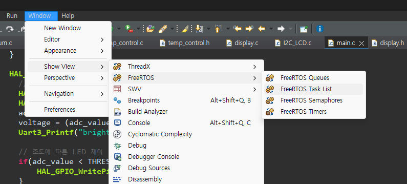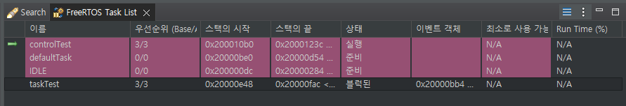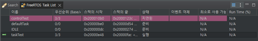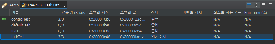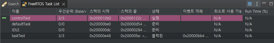 그 점이 궁금해서 진짜 Blocked → Suspended → Ready 로 가는지 테스트를 해봤다. 처음에는 TCB에서 State를 나타내는 값을 찾아서 UART 로 출력하는 방식으로 디버깅을 하려고 했다가, STM IDE 자체에서 FreeRTOS 전용 Status 값을 확인하는 기능을 제공한다는 것을 검색하다가 알게되었다. 이 기능을 활용해서 어떻게 State가 변경되는지 확인해보자.