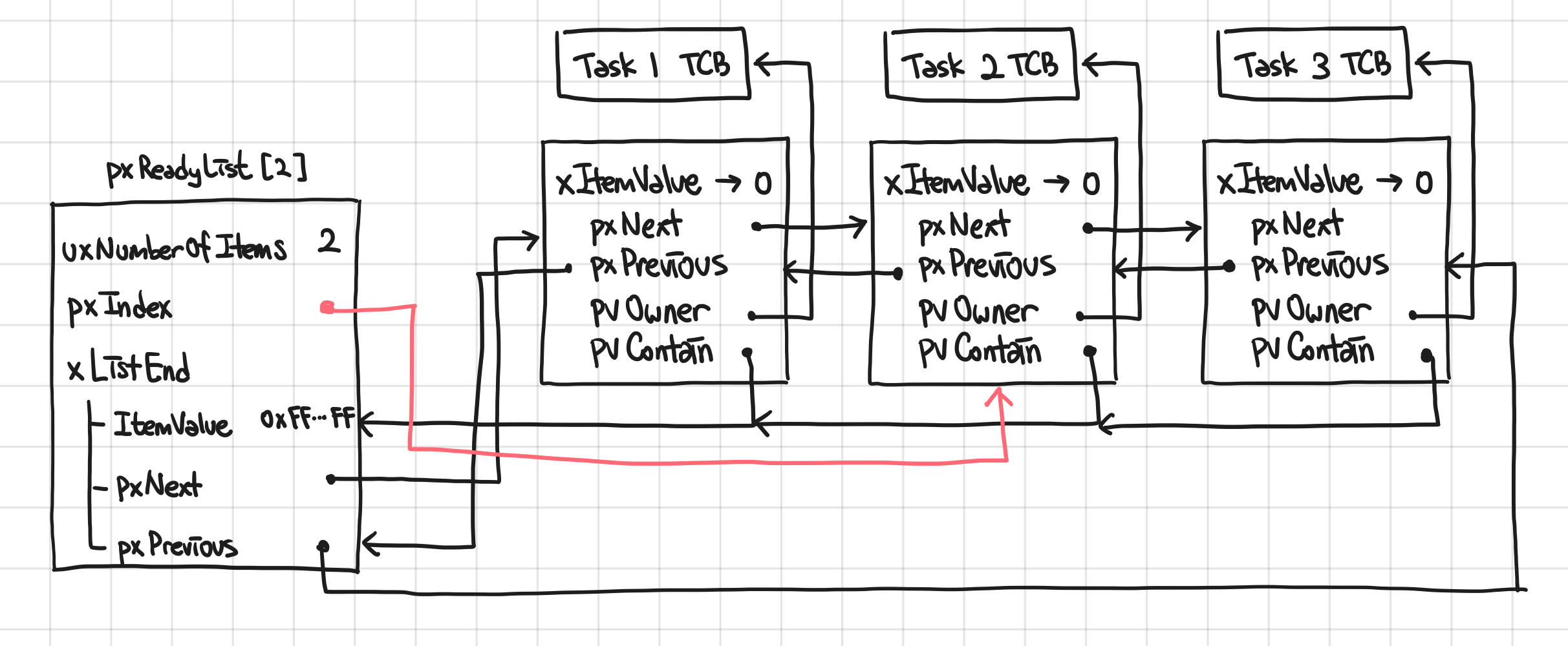 위 상황에서 ReadyTasksList[2]에 대한 List를 간략하게 그려보면 아래 그림과 같다.