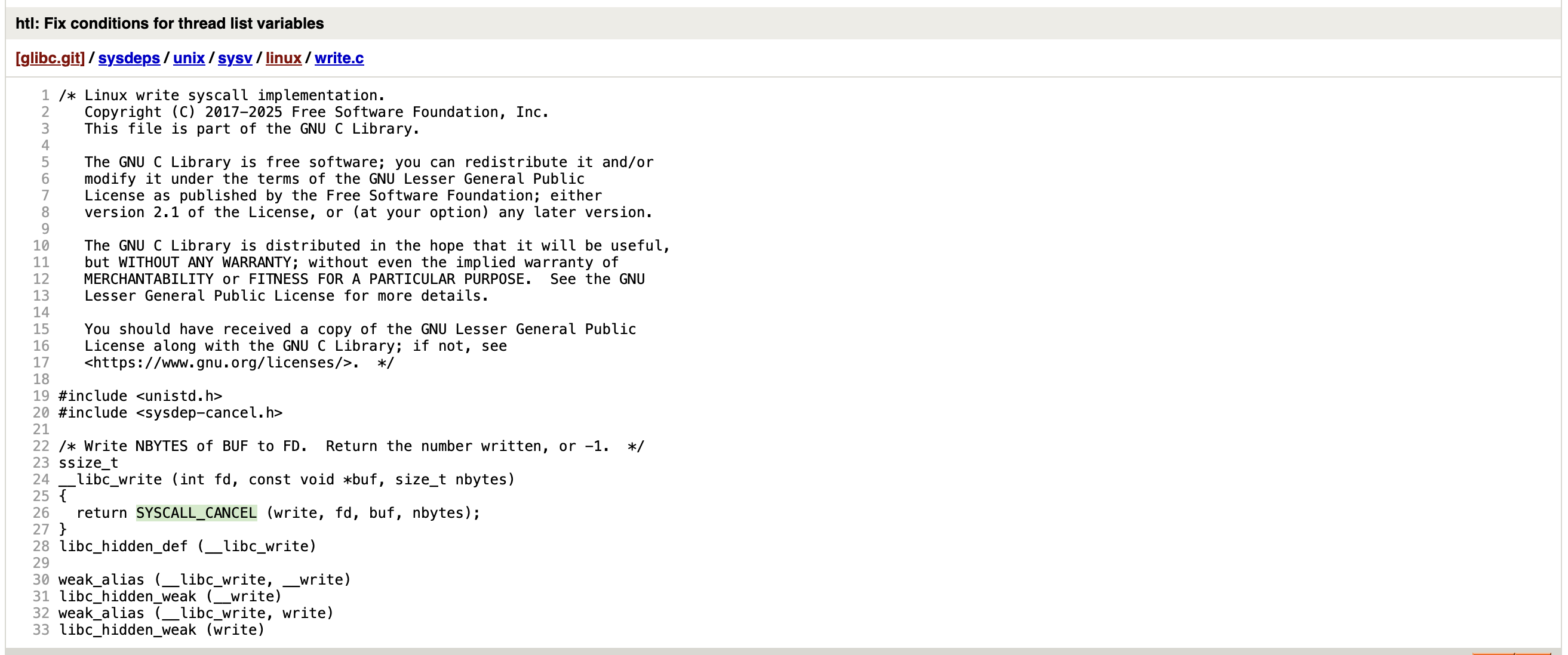 // sysdeps/unix/sysv/linux/write.c