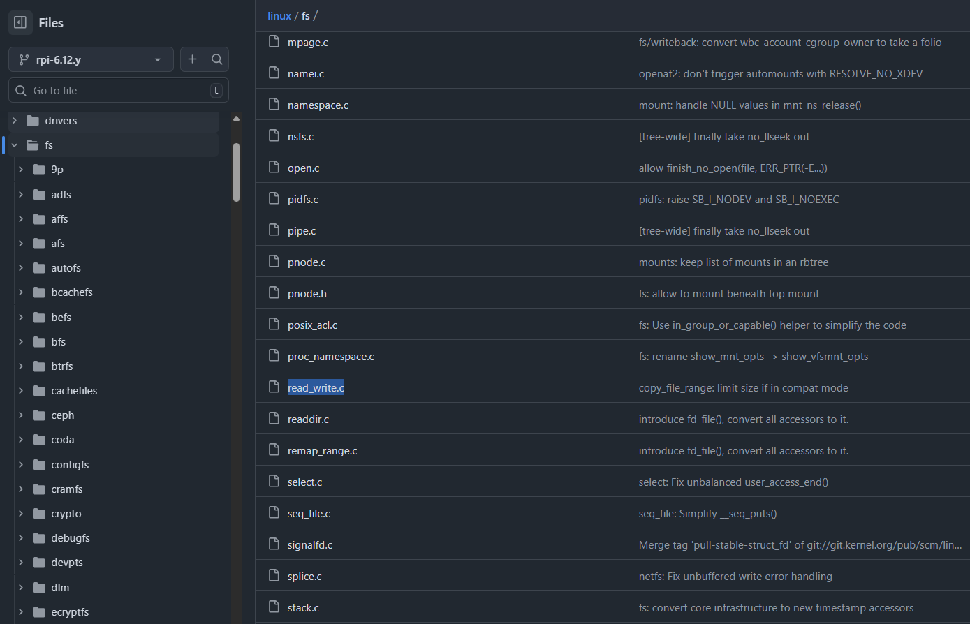 확실히 리눅스 커널의 구현은 모듈식으로 되어있다는 말 답게, 각각의 시스템 콜을 통해 호출할 수 있는 다양한 기능들이 각 파일로 분리가 되어있었다. 만약 특정 기능을 수정하고 싶다면 해당 파일만 수정해주면 될터이고, 특정 기능들이 불필요해서 빼버리고 용량을 줄이기 위해서는 필요한 파일만 남기고 나머지는 제거해버리면 될터이다! (라고 예상됨)