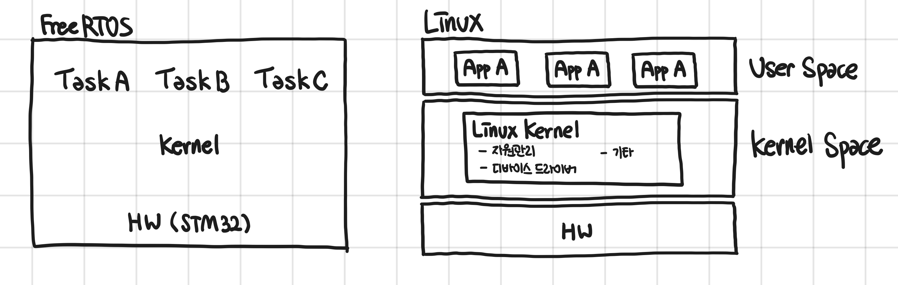 이전에 사용해봤던 (나름 OS인) FreeRTOS 와 Linux의 차이를 한 번 살펴보자.