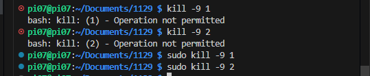 라고 생각할 때 그렇다면 루트 프로세스들을 죽여버리면 어떻게 될까? 얘네도 이거 못하나? 싶어서 바로 살을 날려봤는데 sudo 명령어가 먹긴 하지만 회피를 해버린 모습. 이건 안전하게 보호해주나보다.