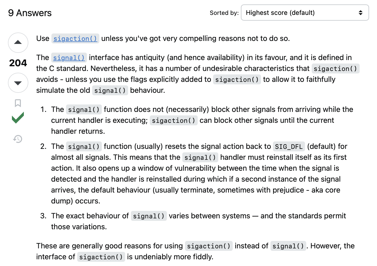 핸들러가 더 많은 정보를 받음 (sa_sigaction 사용) |