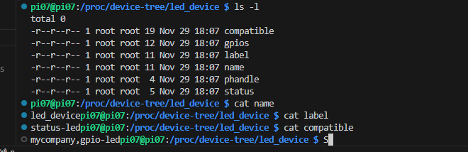 - 안에 compatible, gpios, label, status 같은 프로퍼티가 전달된다.
